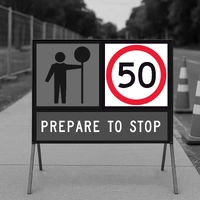 - Clear temporary speed instruction helps reduce approach speeds and improve worksite safety