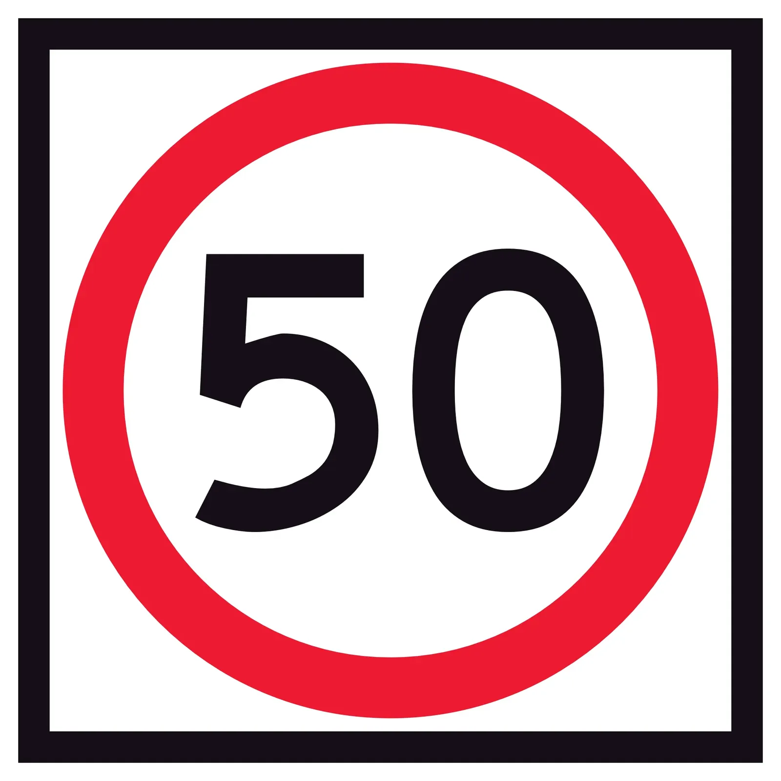 RM4-1A(50) - 600x600mm 50 Speed Limit corflute sign, AS 1742/1743 compliant, fits Multi-Message Sign Frame No. 1. Used for temporary reduced speed zones at worksites.Availability Description