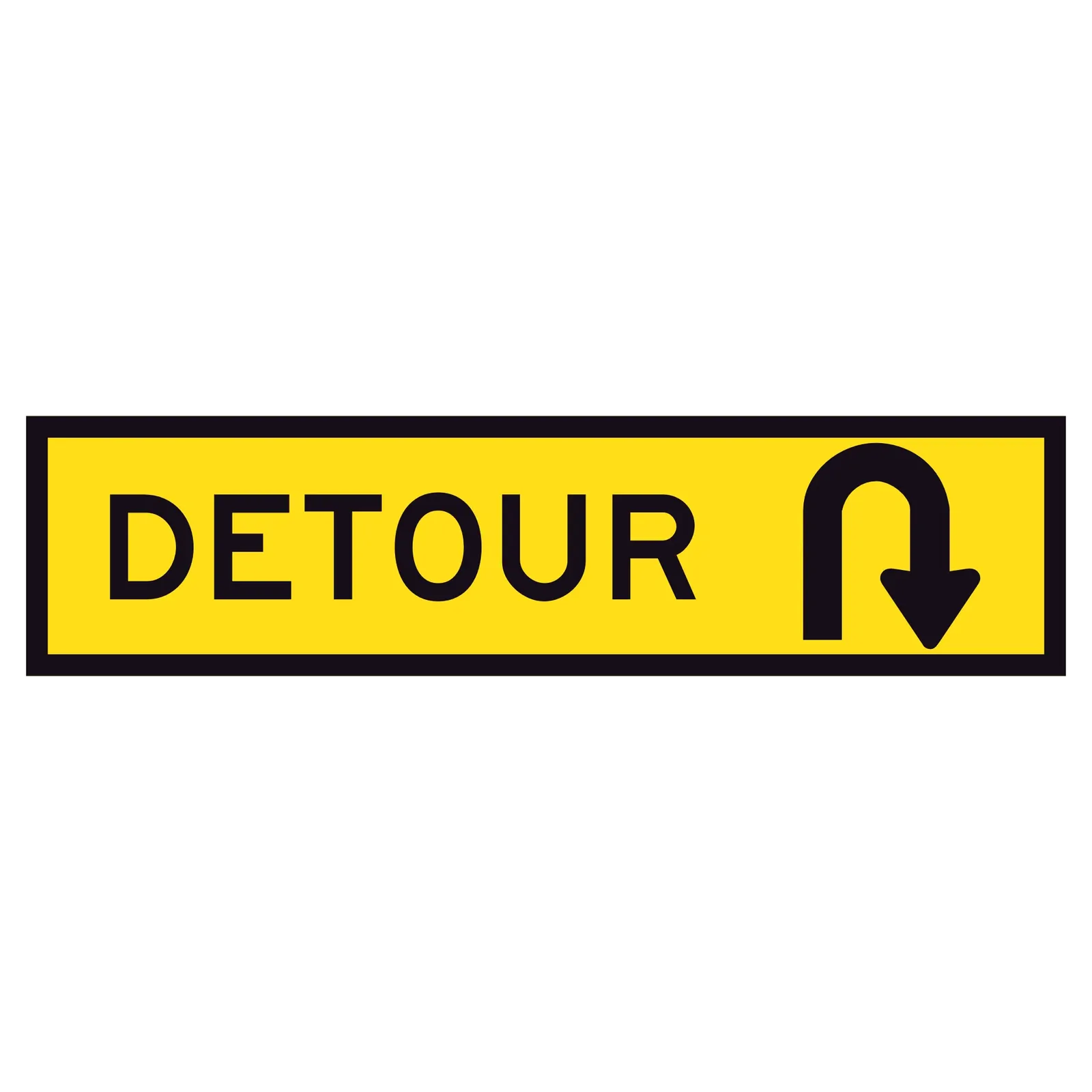 TMU-609B Detour U-Turn (1200x300mm) corflute sign panel, 6mm corflute board and Class 1W full-cube prismatic sheeting. Compliant with AS 1742 and AS 1743 for safe reversal of traffic flow at the end of detour routes.Availability Description