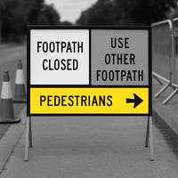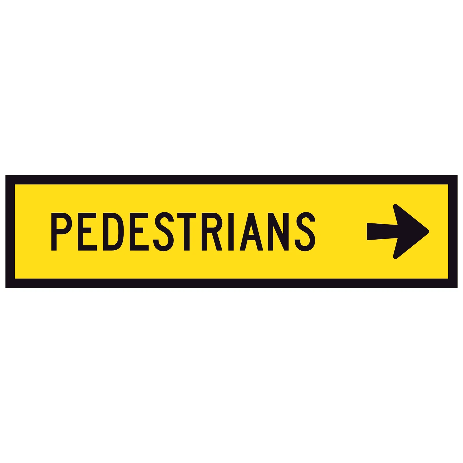 Pedestrian Right (1200x300x6mm) Corflute Sign: Hi-vis temporary traffic sign for Multi-Message Frame. Made in Aus to VicRoads Spec 86 & AS 1742/1743. Retroreflective yellow background, black legend. Full-cube reflective sheet for top brightness & safetyAvailability Description