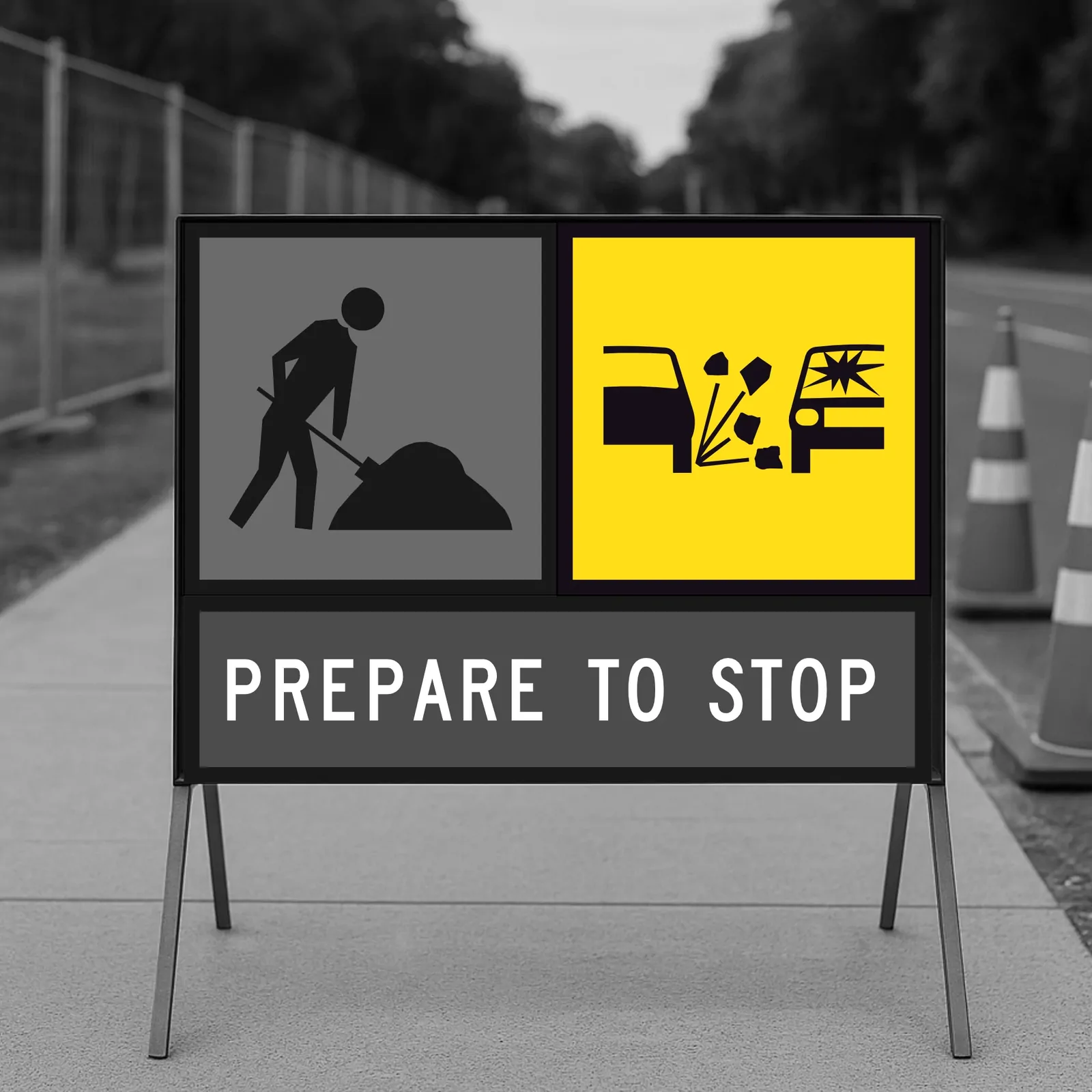 In a Multi-Message Sign Frame No. 1, this panel is commonly paired with a speed control message such as Reduce Speed (1200x300mm) or a temporary speed panel, and can be combined with a bottom 1200x300 message like Next [..]km to reinforce the length of the hazard area. This creates a simple, effective sequence that improves compliance and reduces complaints about damage.