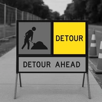 - Pairs cleanly with 1200x300 detour arrows to provide exact direction guidance