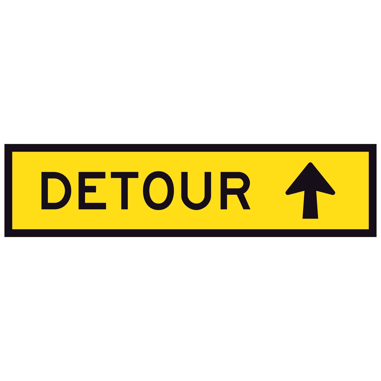 Detour Straight Arrow (1200x300) Corflute Sign: Hi-vis temporary traffic sign for Multi-Message Frame. Made in Aus to VicRoads Spec 86 & AS 1742/1743. Retroreflective yellow background, black legend. Full-cube reflective sheet for top brightness & safety.Availability Description