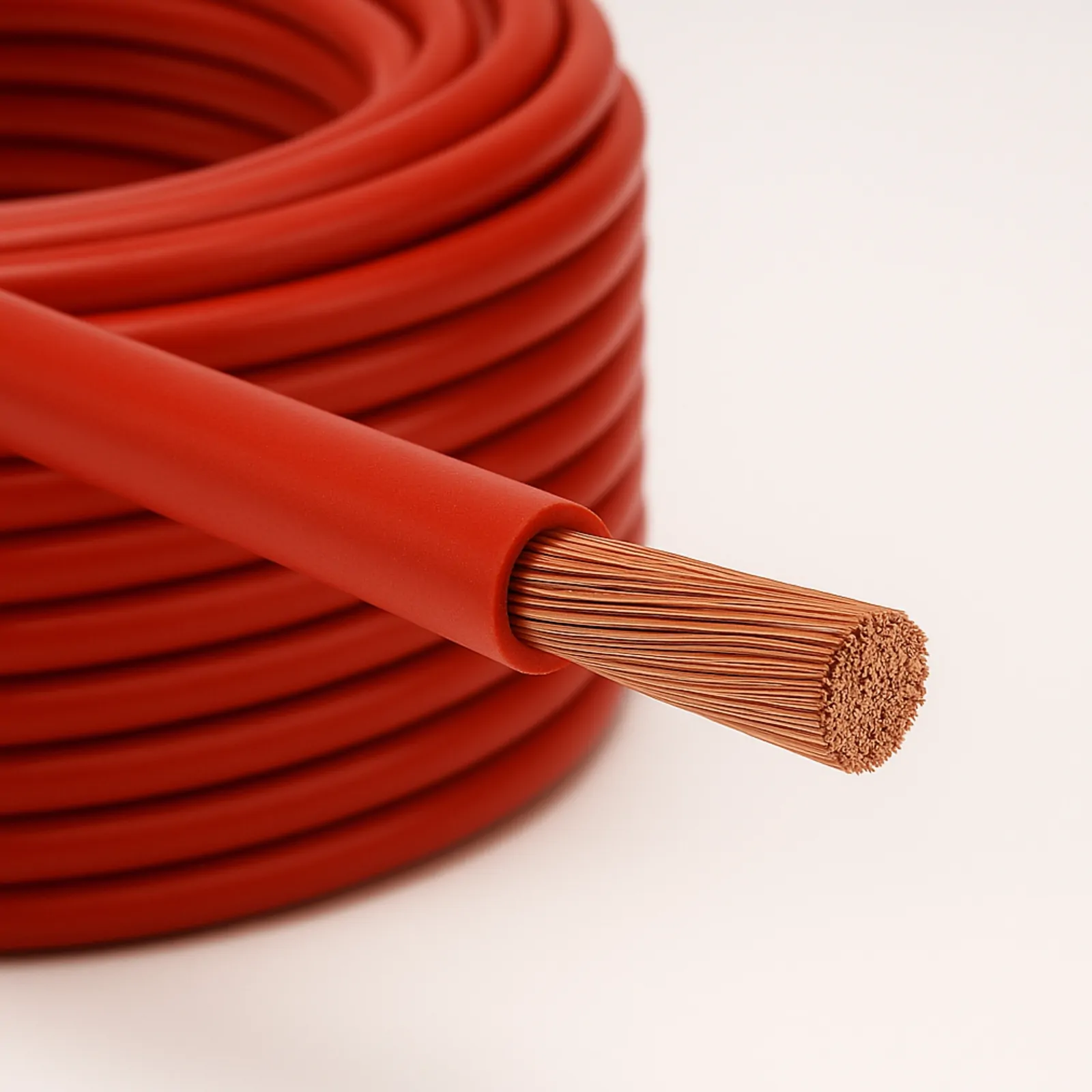 High-performance 8 B&S red battery cable, 99.99% oxygen-free copper, UV stabilised, V90 rated, ideal for 4WD, marine, and heavy-duty automotive wiring.Single Core Battery Cable 8 B&S RED (30m Roll)
