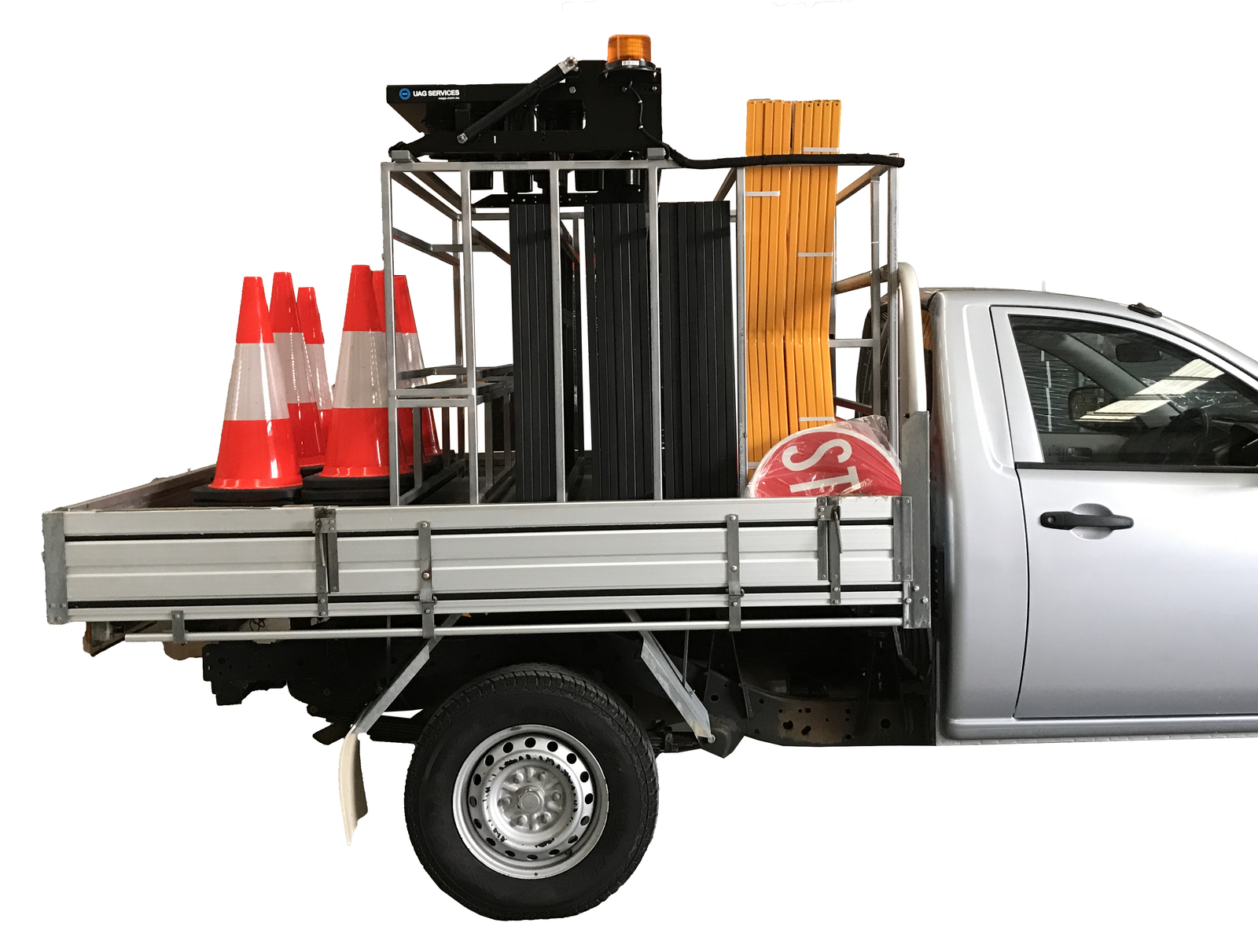 The Traffic Vehicle Racking Cage from UAG Services is a durable, Australian-made storage solution for traffic management equipment. Constructed from 25mm duragal steel, it securely organises signs, arrowboards, bollards, and cones on trucks or utes.Availability Description