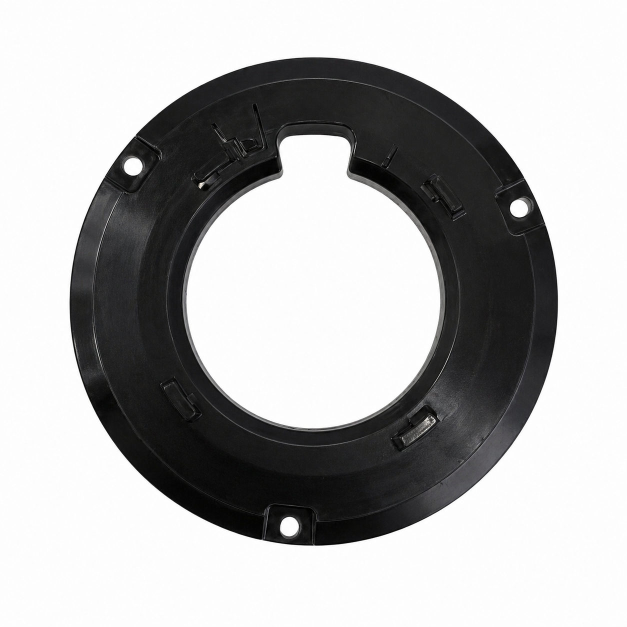 The beacon uses a two-part mounting system consisting of a fixed base ring and a removable beacon body. The base ring is permanently mounted to the vehicle using a three-point fixing pattern on trays, headboards, roof racks or dedicated mounting plates. The beacon body is then positioned onto the base and rotated to lock into place, allowing the unit to be removed or replaced without disturbing the mounted base hardware.